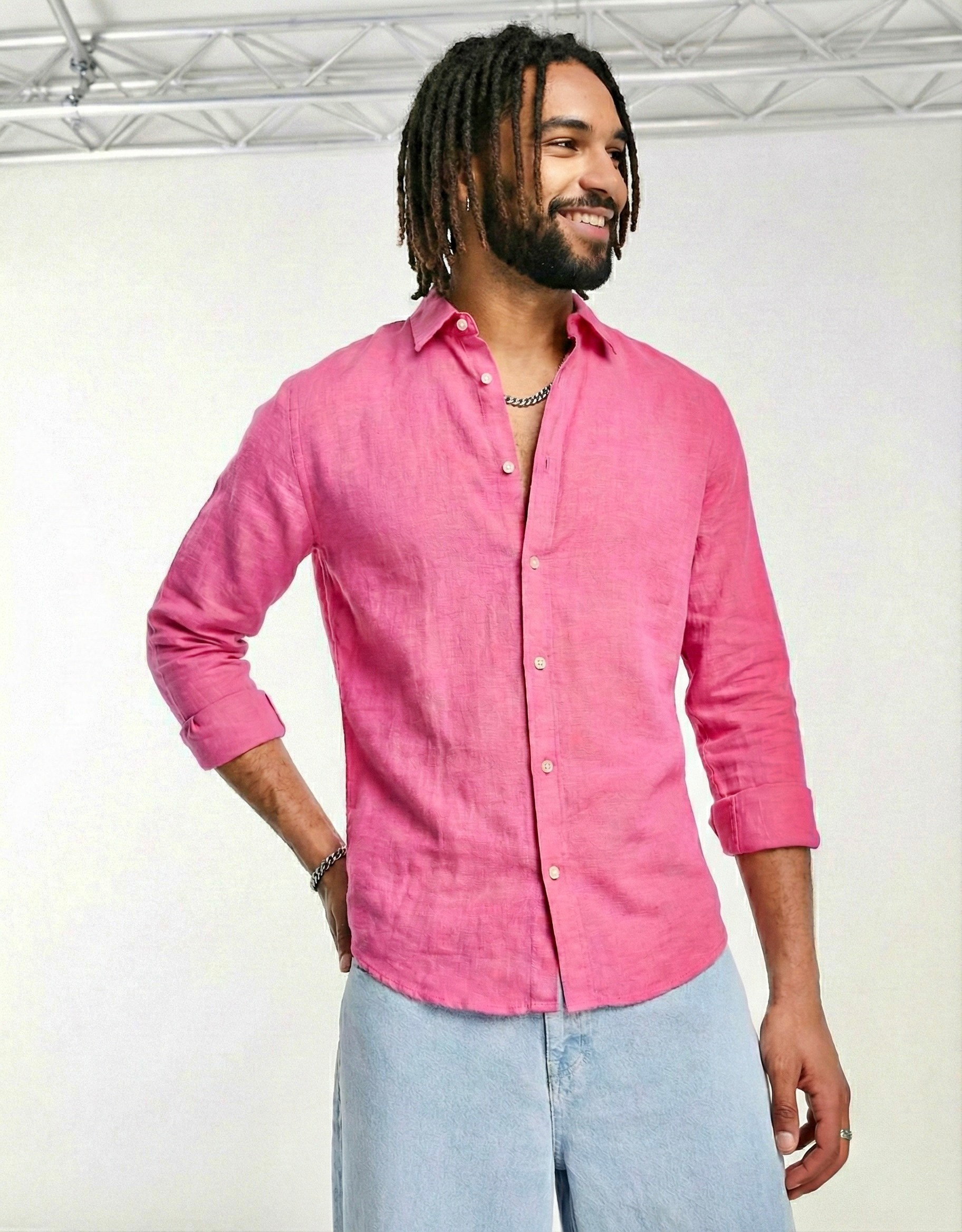 Shirt is Linen. Please order your exact size